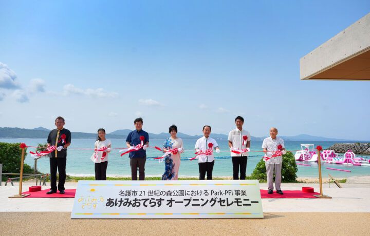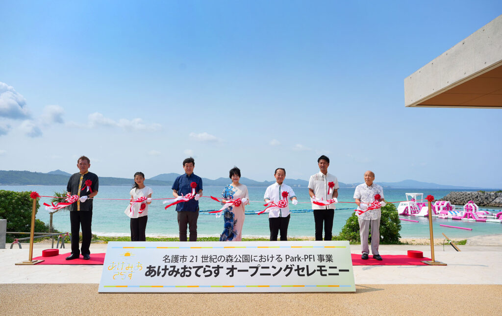 オープンに先立ち、4月14日には名護市長をはじめ多くの関係者出席のもと、オープニングセレモニーが華やかに執り行われました。式典では、地域の新たなシンボル誕生への期待とともに、名護の美しい海岸線を活かした観光・交流拠点としての第一歩を祝いました。